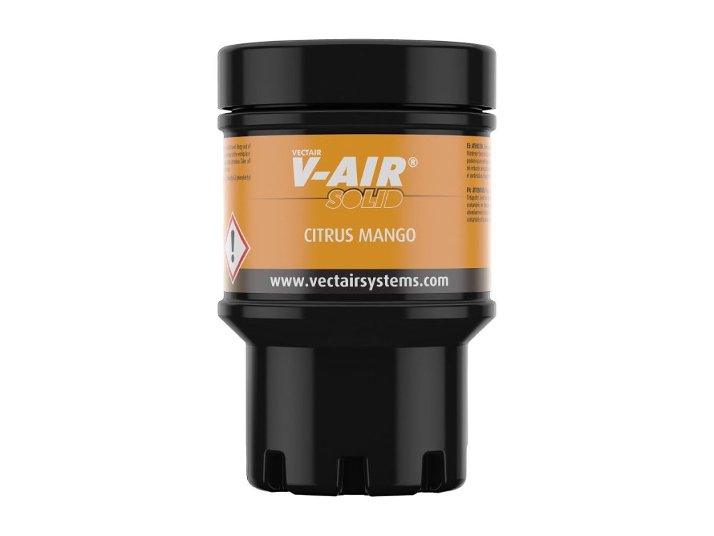 Náplň V-Air Solid Citrus Mango využíva multifázovú vôňu, ktorá sa postupne mení počas 60 dní. Je vyrobená z organických ingrediencií bez aerosólov, pohonných látok, batérií a kvapalín a využíva sub-mikro technológiu na rovnomernú distribúciu vône. Vôňa Citrus Mango spája svieže citrusy s exotickou mangovou arómou a osvieži priestor až do 170 m². Náplň je kompatibilná so zásobníkom V-Air Solid a predstavuje ekologickú voľbu osvieženia vzduchu.
